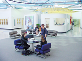 Jacobs High Tech High is the network’s first school. Opening in September, 2000, its dynamic facility is located on the grounds of the former Naval Training Center in Point Loma (San Diego), CA, in the midst of what is now a thriving mixed-use development that includes adjacent housing, business and retail establishments, cultural institutions, and public plazas and parks. Housing 550 students in grades 9-12, the building was designed as a collaborative effort between the HTH design team (under the direction of New Vista’s David Stephen) and Carrier Johnson Architects. The project entails the adaptive reuse and complete renovation of a 38,500 square foot warehouse building, the interior of which boasts saw-tooth skylights which flood the building with natural light, and an exposed steel structural system that runs its entire length. With its ubiquitous technology, flexible spaces, open sight lines, and high-end finishes, the facility was designed as a model for 21st Century teaching and learning.